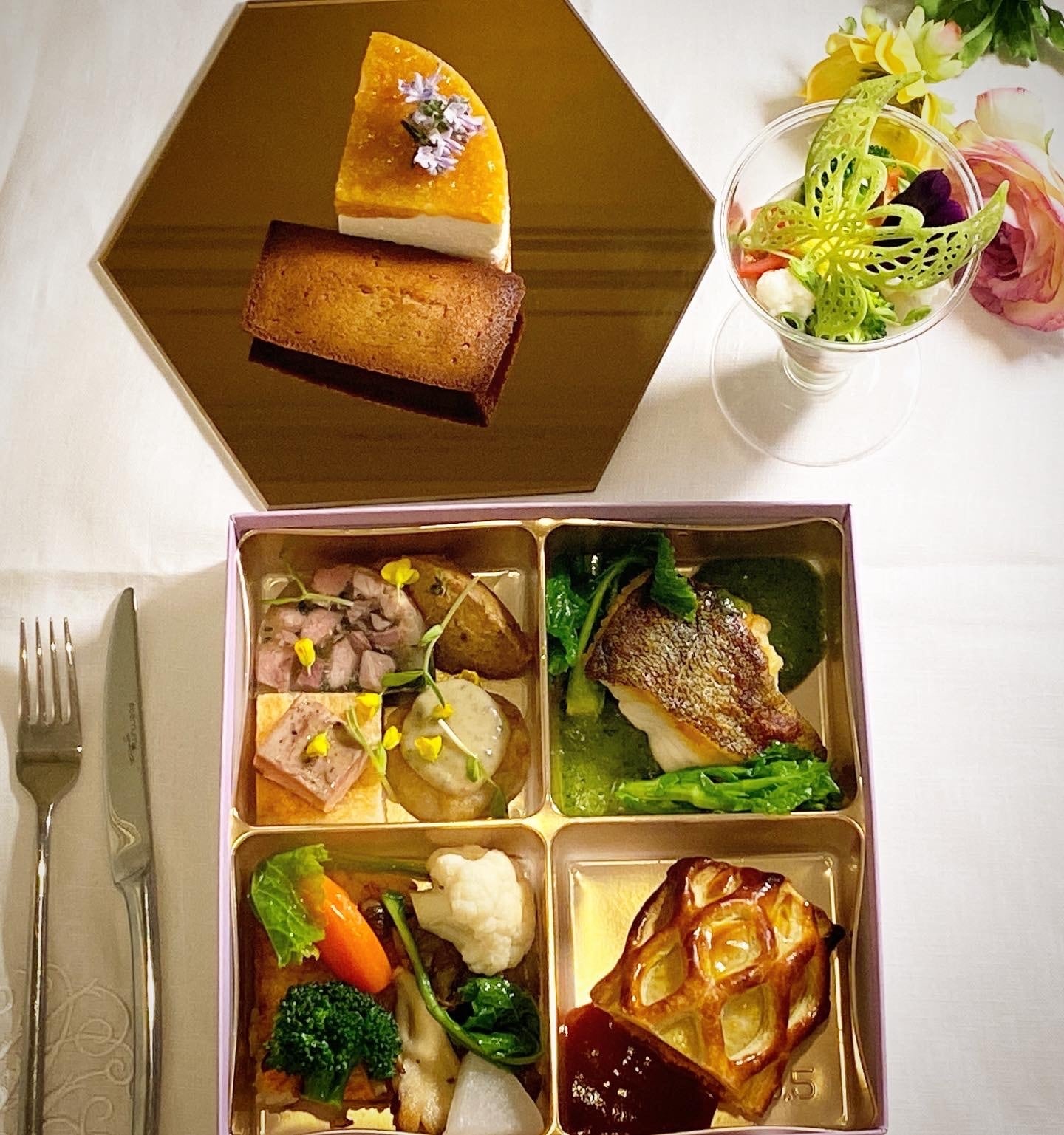アミューズ、前菜からデザートまで。すべてついたフルコーススタイルが、お受け取りしやすい”洋風お重スタイル”に生まれ変わりました‼︎